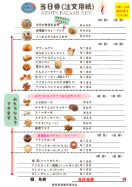 説明会の最後にお知らせ致しましたあいしんバザーの食品注文について